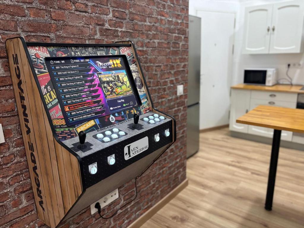Espacio amplio, equipado con todas las comodidades, proyector de cine y videojuegos arcade, ideal para relajarse y disfrutar de estancias lo más amenas posible al final del día.